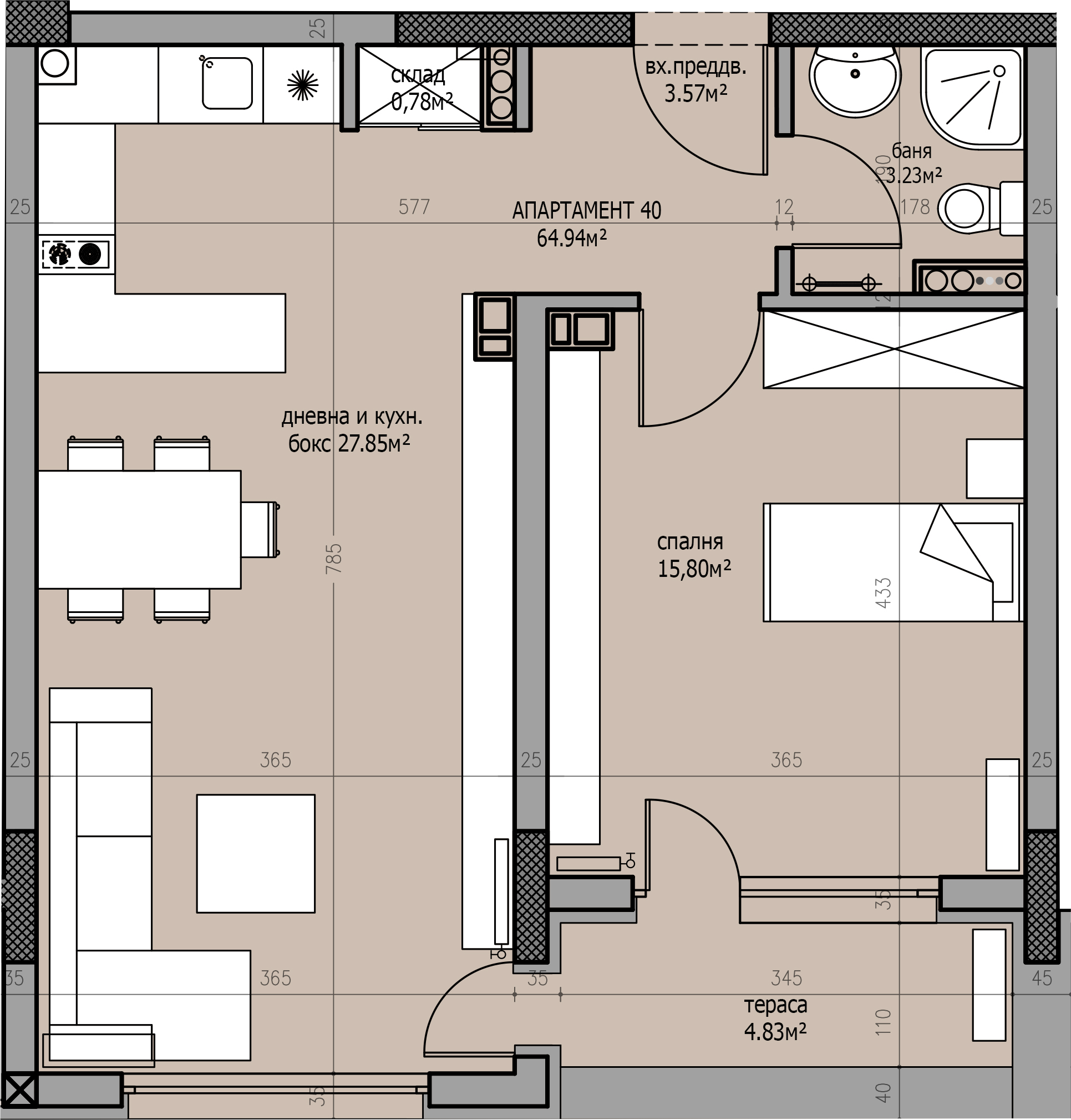 Обща площ — 52 кв.м.
